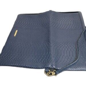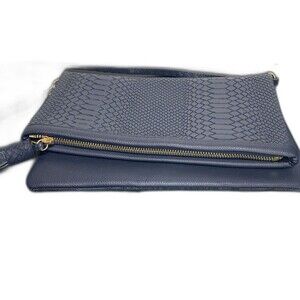 GIGI NEW YORK Navy Embossed Python Leather, Fold Over Clutch/Crossbody Purse.