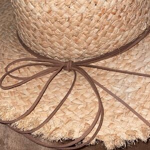 Stylish straw sun hat. Features a brown leather detail. Perfect for sunny days. These hats fit me . So if you’ve got a small head they will fit a woman.
