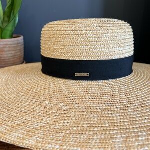 GIGI PIP Wide Brim Straw Hat with Black Trim. Like new, only used twice. Perfect accessory for the beach or lake this summer!