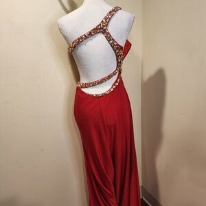 GIGI Red Floor length Backless Studded Open Front Prom Gown 4