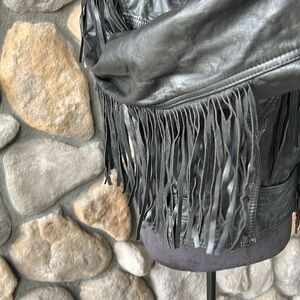 Beautiful GIII Black Leather Fringe Moto Jacket