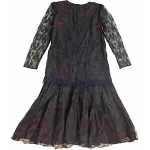 GILBERTI Victorian Vintage Navy Lace Dress 10 M L Goth Flapper 80s Midi Formal