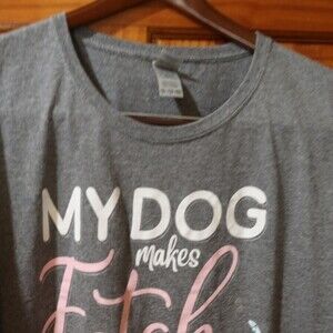 GILDAN Gray My Dog Makes Fetch Happen Floral Funny Y2k Mean Girls Joke Shirt 2X