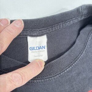 GILDAN Heavy 100% Cotton TearAway Long Sleeve Unisex LARGE Black Graphic Tee