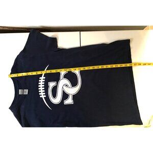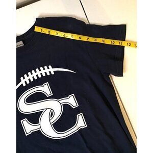 This GILDAN-CREW NECK SHORT SLEEVE YOUTH CAMP T-SHIRT SMALL is a blue, 100% cotton tee with front and back graphic logo, suitable for young men.