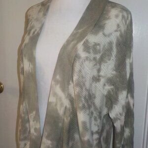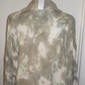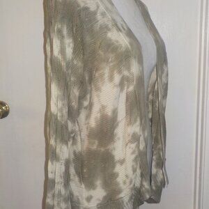 GILDED INTENT SIZE SMALL GREEN AND CREAM TIE-DYE OPEN FRONT CARDIGAN SWEATER
