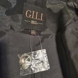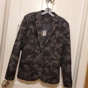 G.I.L.I Black & Gray Camo Print Ponte Knit Blazer Lined Size 10