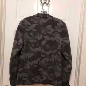 EUC G.I.L.I Black & Gray Camo Print Ponte Knit Blazer Lined Size 10