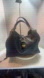 Elegant black leather handbag featuring gold accents. Perfect for any occasion.