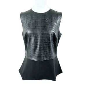 G.I.L.I. Black Mixed Media Sleeveless Top, Faux Leather, Size 14 Chic Edgy Goth