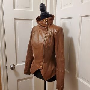 sweet as can be preowned fully lined leather jacket with brushed goldtone hardware
