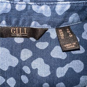 G.I.L.I. Cheetah Print Denim Button Front Shirt Small