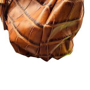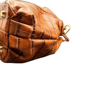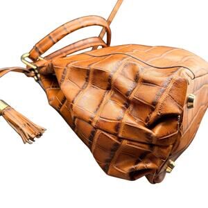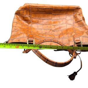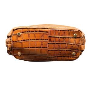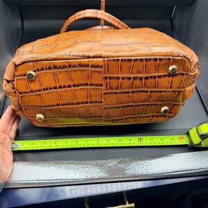 G.I.L.I. Genuine Leather Croc Embossed Satchel Tote Bag Cognac Brown