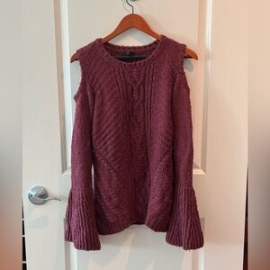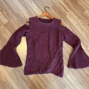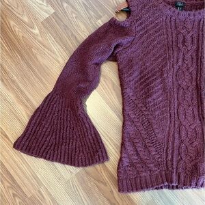 G.I.L.I. Got It Love It Cold Shoulder Burgundy Sweater with Bell Sleeves