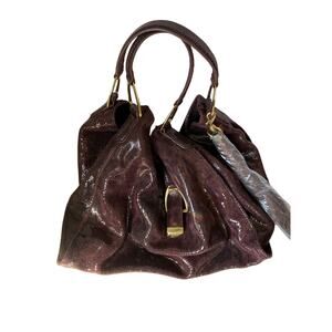 GILI Got To Love It Large Leather Emb Snake Plum TASSEL Hobo Bag Purse Roma Tote