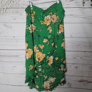 G.I.L.I Green Floral Print High-Low Ruffle Hem Wrap Skirt Womans Size Large