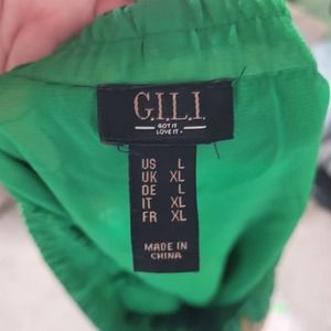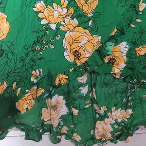 G.I.L.I Green Floral Print High-Low Ruffle Hem Wrap Skirt Womans Size Large. Pre-owned