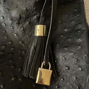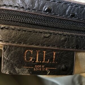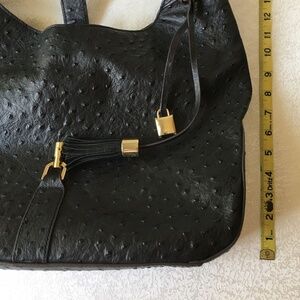 GILI Hobo Style Handbag Black Leather Ostrich Embossed Shoulder Bag Purse