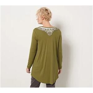 G.I.L.I. NEW $67 Knit Cardigan w/ Beaded Mesh Detail Almond Medium