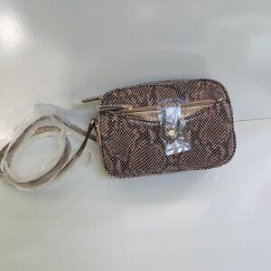 G.I.L.I. NIB Leather Snakeskin Embossed Gold Metallic Trim 2 Piece Crossbody Bag
