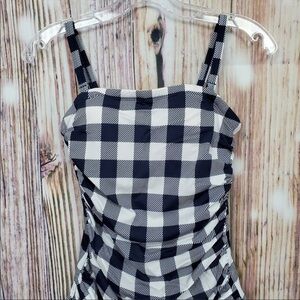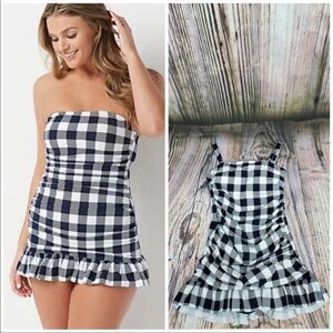 G.I.L.I. convertible ruffle hem navy checkered swim dress. Color is navy and white. Adjustable straps that are removable. Brand new with liner still attached but no tags. Fast shipper and packaged with care.