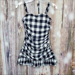 G.I.L.I. Navy Checkered Ruffle Hem Swim Dress Size 14