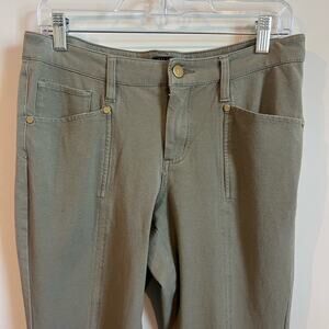GILI Women 10 Pants Duel Stretch Olive Front Slit Flare Boho Festival Concert Spring