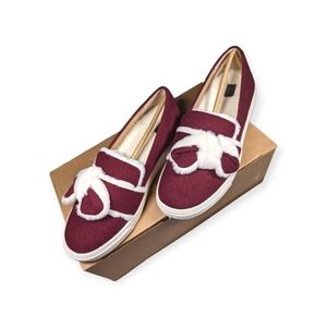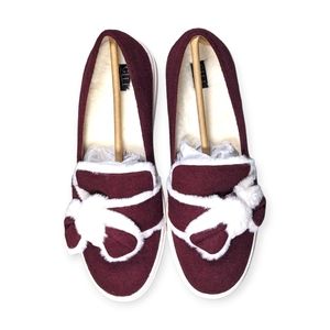 G.I.L.I. Slip-On Flats Maritza Faux Fur & Felt with a Bow - Burgundy NIB NWT