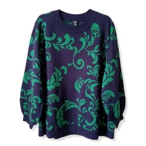 GILI Women Floral Sweater Jumper 2X Navy Blue Green Preppy Twee Classic NEW