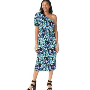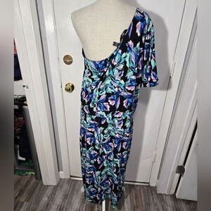 G.I.L.I. Women's Black/Floral One Shoulder Printed Knit Dress Size 1x