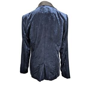 G.I.L.I. Womens Blue Velvet Blazer SZ 6 Black Satin Shawl Lapel Holiday Glam