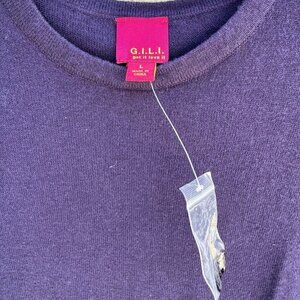 G.I.L.I. Womens Purple & Black Long Sleeve Cotton Blend Knit Sweater Top Size L