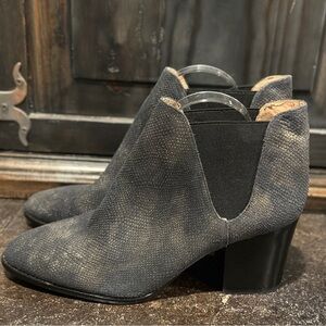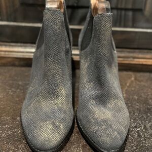 snakeskin print heeled boots, there is some pilling on the inside (see photo) otherwise great used condition