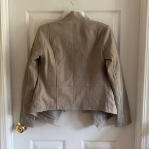 G.I.L.I. Leather jacket. Gray. Length 21 inches. Armpit to armpit 17 inches. Drape front. Leather. Pockets in the front. New without tags. Size 2.