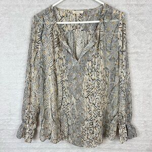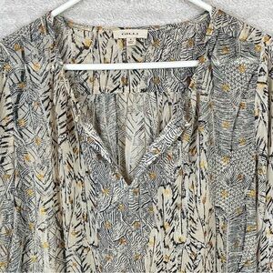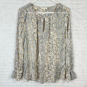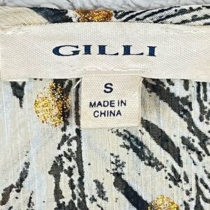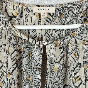 GILLI Chiffon Boho Flowy Blouse with Gold Accents Abstract Print Small Old Money