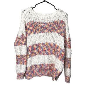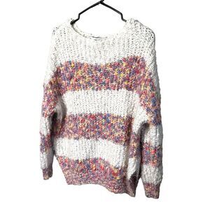 GILLI chunky popcorn knit crewneck confetti multi color stripes size small