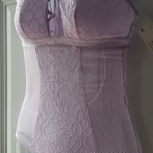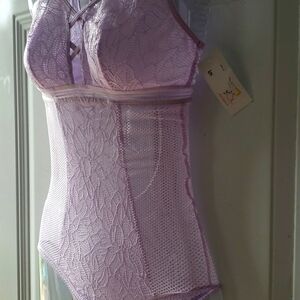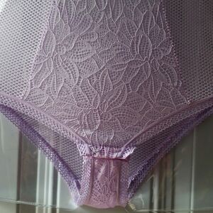 soft stretchy lace easy slip on hook and eye closure in back and in the crouch.