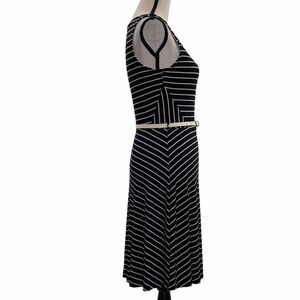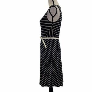 GILLIO Mini Black Striped A-Line Belted Dress L