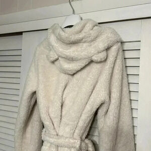 GILLY HICKS by HOLLISTER CO sleep/lounge bath robe hooded with belt M/LG ivory color (2pc bundle)