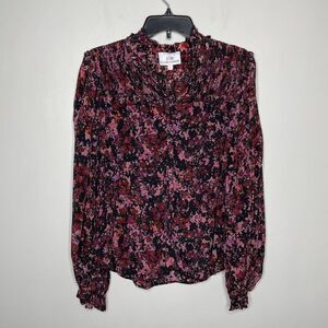 GILNER FARRAR Blouse Womens Large L Floral Button Front Riley Ruffle Smocked