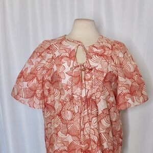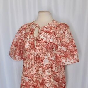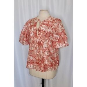 GILNER FARRAR Red Floral Print Blouse Top Flutter Sleeves Tie Neck Vacay Medium