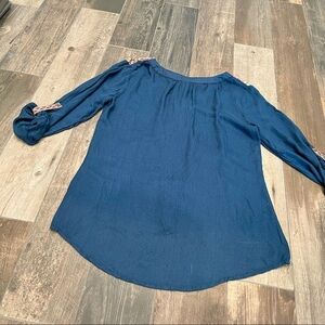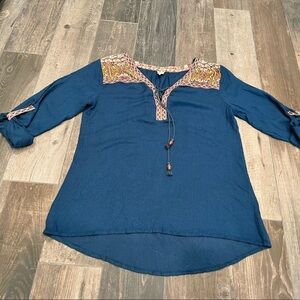 GIMMICKS BKE THE BUCKLE LACE UP Boho Trims LS TOP WOMENS SZ M.