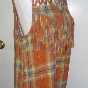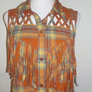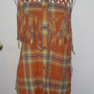 GIMMICKS SIZE X-LARGE RUST ORANGE BUTTON DOWN SLEEVELESS FRINGE SHIRT