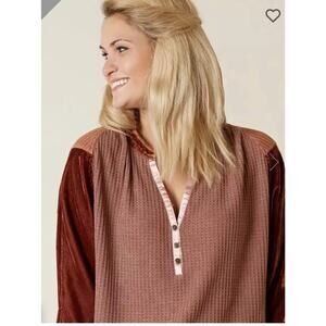 GIMMICKS Waffle Thermal Henley Top Size Medium Velvet BKE NWOT Boho Relaxed Top