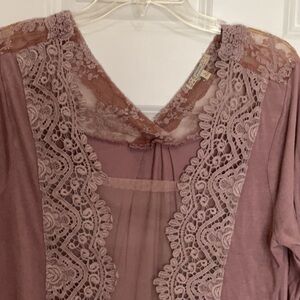 GIMMICKS by BKE Lace Inset Blouse. Size Large. Color Mauve. Great pre-owned condition. Very stylish top.