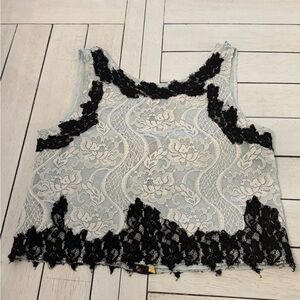 Blue and black lace tank top -cropped