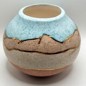 GINA Native American 24kGold Handcrafted Southwestern Desert Pottery Signed Vase