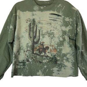 GINA tees Cactus and Cowboys Sweatshirt. Western Style. Distressed Medium