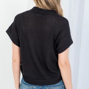 BLACK DEEP V-NECKLINE WITH FRONT TWIST KNOT EXPOSE MID DRIFT TOP