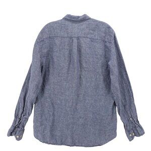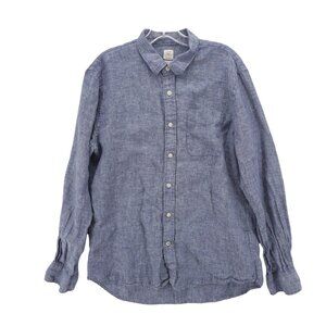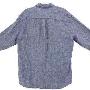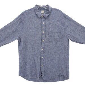 GIORDANO 100% Linen Shirt Blue Woven SLIM FIT Long Sleeve Button Up Men's LARGE